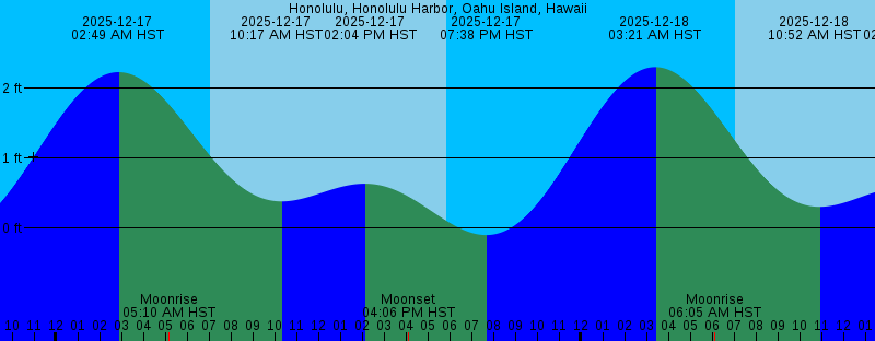 2025-12-17 02:49 AM HST 2.23 feet High Tide 2025-12-17 05:10 AM HST Moonrise 2025-12-17 07:02 AM HST Sunrise 2025-12-17 10:17 AM HST 0.38 feet Low Tide 2025-12-17 02:04 PM HST 0.63 feet High Tide 2025-12-17 04:06 PM HST Moonset 2025-12-17 05:53 PM HST Sunset 2025-12-17 07:38 PM HST -0.10 feet Low Tide 2025-12-18 03:21 AM HST 2.30 feet High Tide 2025-12-18 06:05 AM HST Moonrise 2025-12-18 07:03 AM HST Sunrise 2025-12-18 10:52 AM HST 0.30 feet Low Tide 2025-12-18 02:45 PM HST 0.59 feet High Tide 2025-12-18 04:53 PM HST Moonset 2025-12-18 05:53 PM HST Sunset 2025-12-18 08:11 PM HST -0.13 feet Low Tide 2025-12-19 03:55 AM HST 2.34 feet High Tide 2025-12-19 06:58 AM HST Moonrise 2025-12-19 07:03 AM HST Sunrise 2025-12-19 11:27 AM HST 0.25 feet Low Tide 2025-12-19 03:24 PM HST 0.56 feet High Tide 2025-12-19 03:44 PM HST New Moon 2025-12-19 05:44 PM HST Moonset 2025-12-19 05:53 PM HST Sunset 2025-12-19 08:46 PM HST -0.15 feet Low Tide 2025-12-20 04:30 AM HST 2.35 feet High Tide 2025-12-20 07:04 AM HST Sunrise 2025-12-20 07:50 AM HST Moonrise 2025-12-20 12:03 PM HST 0.22 feet Low Tide 2025-12-20 04:04 PM HST 0.54 feet High Tide 2025-12-20 05:54 PM HST Sunset 2025-12-20 06:38 PM HST Moonset |