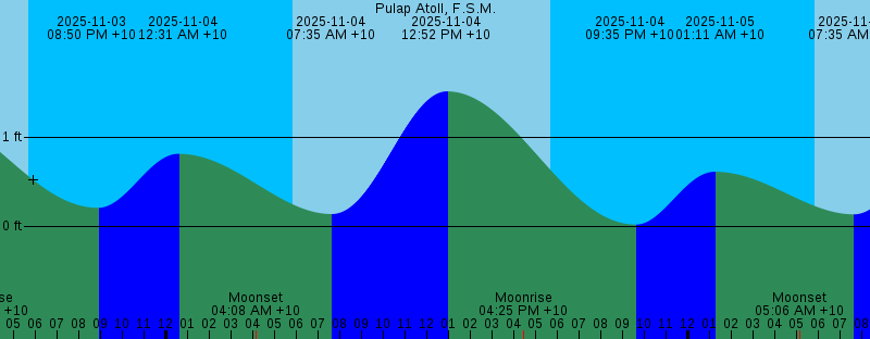 2025-11-03 07:33 AM +10 0.10 feet Low Tide 2025-11-03 12:43 PM +10 1.29 feet High Tide 2025-11-03 03:37 PM +10 Moonrise 2025-11-03 05:41 PM +10 Sunset 2025-11-03 08:50 PM +10 0.21 feet Low Tide 2025-11-04 12:31 AM +10 0.81 feet High Tide 2025-11-04 04:08 AM +10 Moonset 2025-11-04 05:50 AM +10 Sunrise 2025-11-04 07:35 AM +10 0.14 feet Low Tide 2025-11-04 12:52 PM +10 1.51 feet High Tide 2025-11-04 04:25 PM +10 Moonrise 2025-11-04 05:40 PM +10 Sunset 2025-11-04 09:35 PM +10 0.02 feet Low Tide 2025-11-05 01:11 AM +10 0.61 feet High Tide 2025-11-05 05:06 AM +10 Moonset 2025-11-05 05:51 AM +10 Sunrise 2025-11-05 07:35 AM +10 0.13 feet Low Tide 2025-11-05 01:10 PM +10 1.71 feet High Tide 2025-11-05 05:16 PM +10 Moonrise 2025-11-05 05:40 PM +10 Sunset 2025-11-05 10:23 PM +10 -0.11 feet Low Tide 2025-11-05 11:20 PM +10 Full Moon 2025-11-06 01:46 AM +10 0.38 feet High Tide 2025-11-06 05:51 AM +10 Sunrise 2025-11-06 06:08 AM +10 Moonset 2025-11-06 07:31 AM +10 0.08 feet Low Tide 2025-11-06 01:32 PM +10 1.85 feet High Tide 2025-11-06 05:40 PM +10 Sunset 2025-11-06 06:14 PM +10 Moonrise 2025-11-06 11:17 PM +10 -0.17 feet Low Tide 2025-11-07 02:13 AM +10 0.14 feet High Tide 2025-11-07 05:51 AM +10 Sunrise |