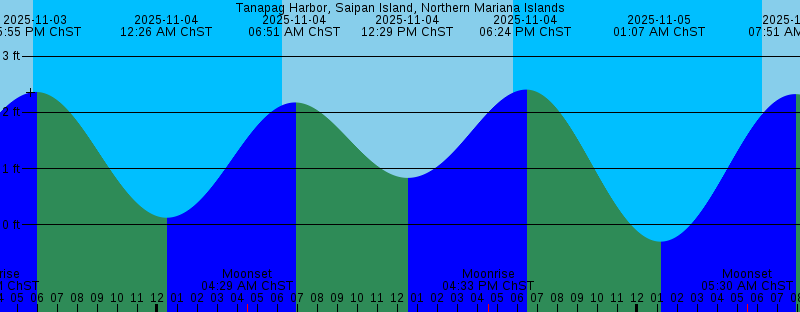 2025-11-03 06:13 AM ChST Sunrise 2025-11-03 11:36 AM ChST 0.61 feet Low Tide 2025-11-03 03:49 PM ChST Moonrise 2025-11-03 05:47 PM ChST Sunset 2025-11-03 05:55 PM ChST 2.36 feet High Tide 2025-11-04 12:26 AM ChST 0.13 feet Low Tide 2025-11-04 04:29 AM ChST Moonset 2025-11-04 06:14 AM ChST Sunrise 2025-11-04 06:51 AM ChST 2.18 feet High Tide 2025-11-04 12:29 PM ChST 0.84 feet Low Tide 2025-11-04 04:33 PM ChST Moonrise 2025-11-04 05:46 PM ChST Sunset 2025-11-04 06:24 PM ChST 2.40 feet High Tide 2025-11-05 01:07 AM ChST -0.30 feet Low Tide 2025-11-05 05:30 AM ChST Moonset 2025-11-05 06:14 AM ChST Sunrise 2025-11-05 07:51 AM ChST 2.32 feet High Tide 2025-11-05 01:20 PM ChST 1.08 feet Low Tide 2025-11-05 05:21 PM ChST Moonrise 2025-11-05 05:46 PM ChST Sunset 2025-11-05 06:56 PM ChST 2.43 feet High Tide 2025-11-05 11:20 PM ChST Full Moon 2025-11-06 01:50 AM ChST -0.65 feet Low Tide 2025-11-06 06:14 AM ChST Sunrise 2025-11-06 06:36 AM ChST Moonset 2025-11-06 08:50 AM ChST 2.41 feet High Tide 2025-11-06 02:12 PM ChST 1.31 feet Low Tide 2025-11-06 05:46 PM ChST Sunset 2025-11-06 06:14 PM ChST Moonrise 2025-11-06 07:30 PM ChST 2.42 feet High Tide 2025-11-07 02:36 AM ChST -0.88 feet Low Tide |